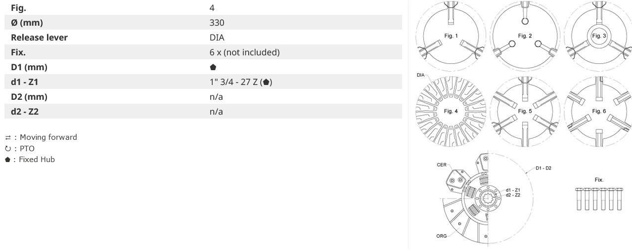 Docisk sprzęgła, Sprzęgło pasuje do ciągników John deere